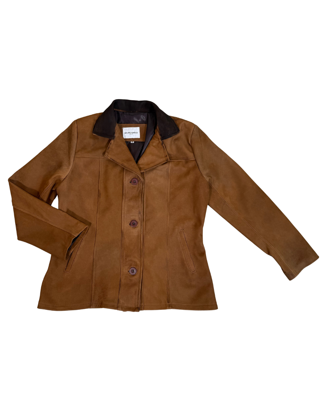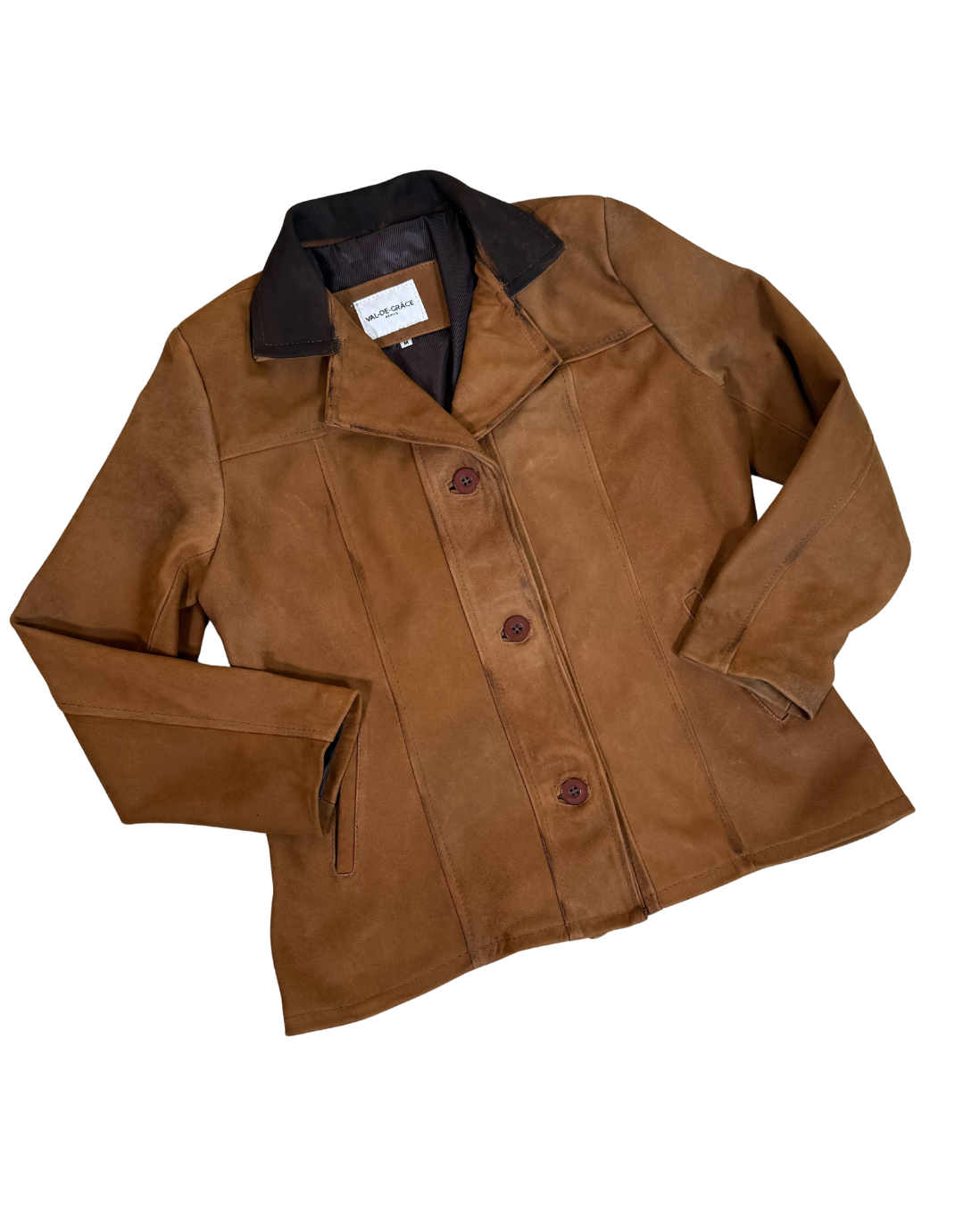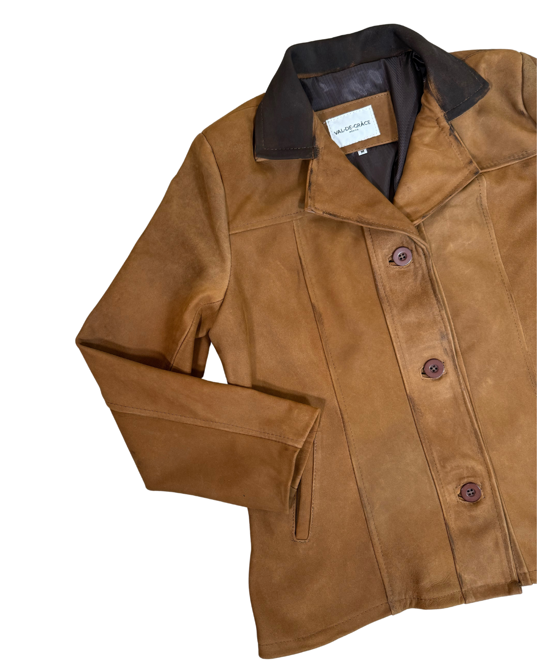 Esta gabardina vaquera de piel vintage es una pieza que destaca por su estilo clásico y atemporal. Confeccionada con materiales de alta calidad, te brindará un look sofisticado y duradero. Perfecta para cualquier ocasión, esta prenda es ideal para todas las que buscan un estilo atemporal y elegante.