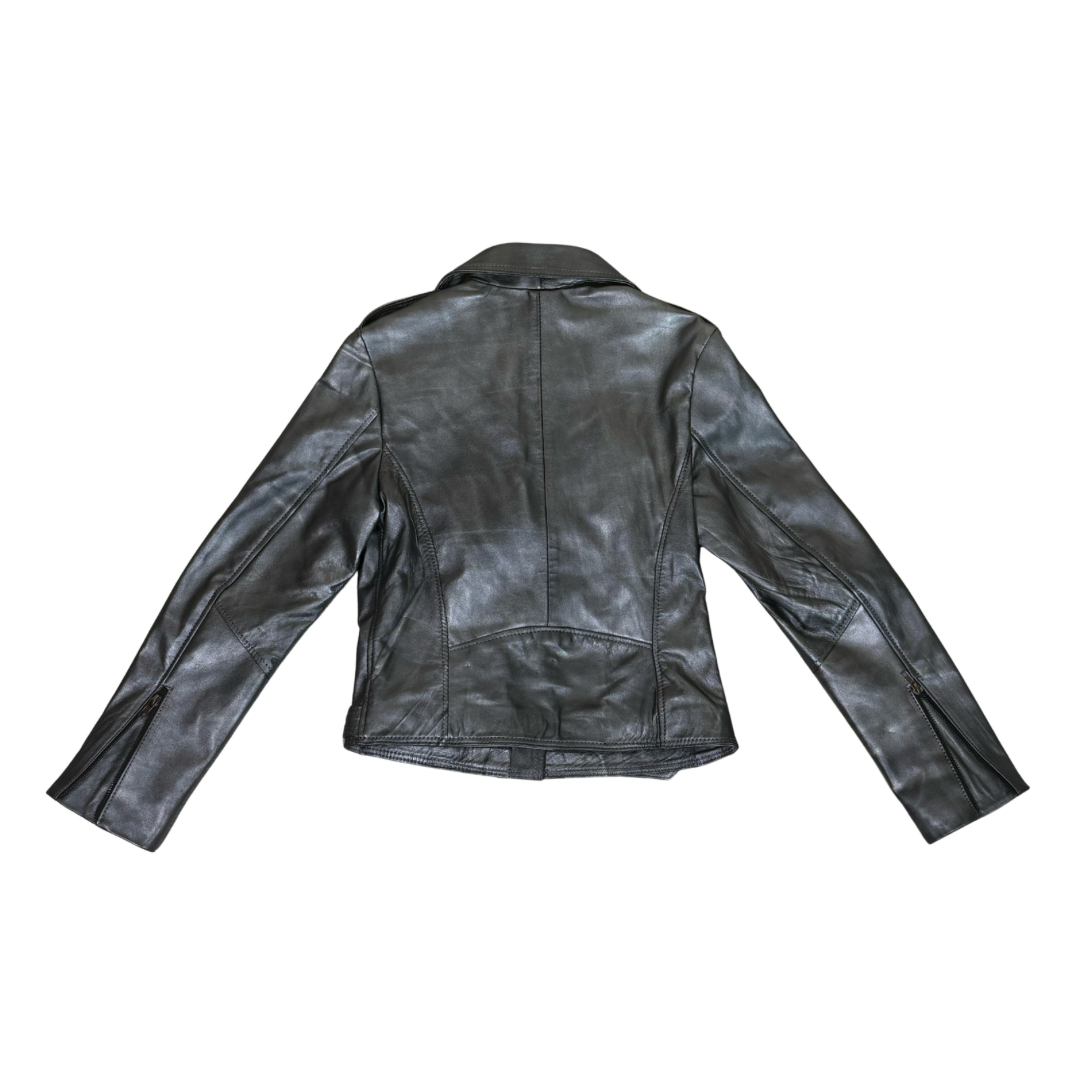 Hecha en piel genuina de borrego con un color metálico y cierres en color negro