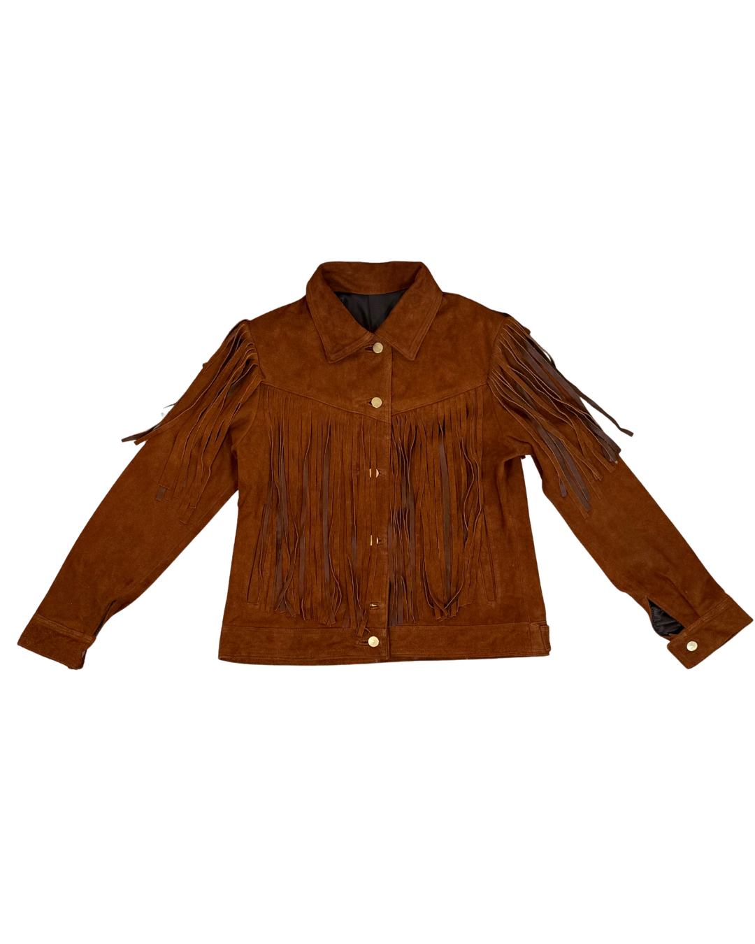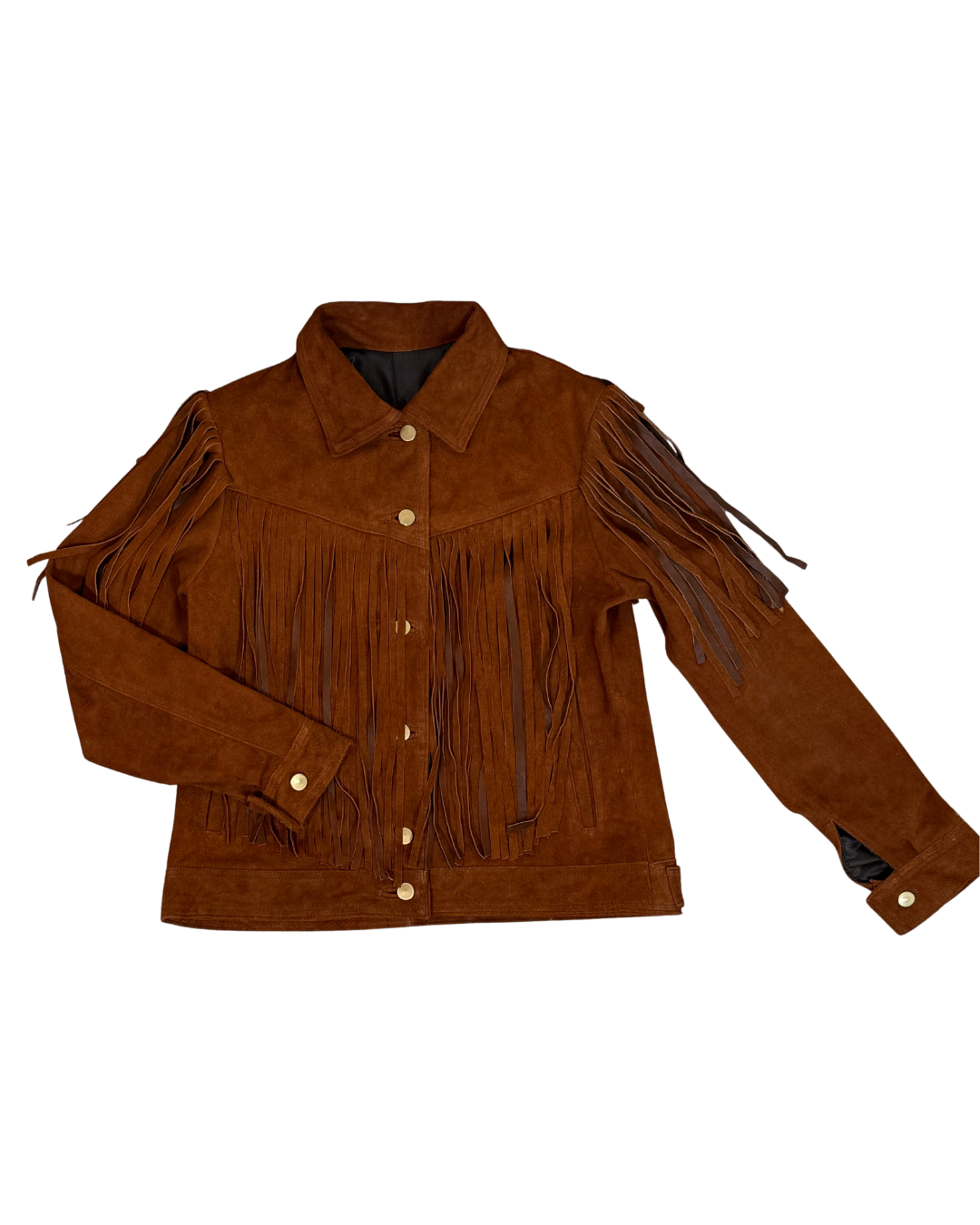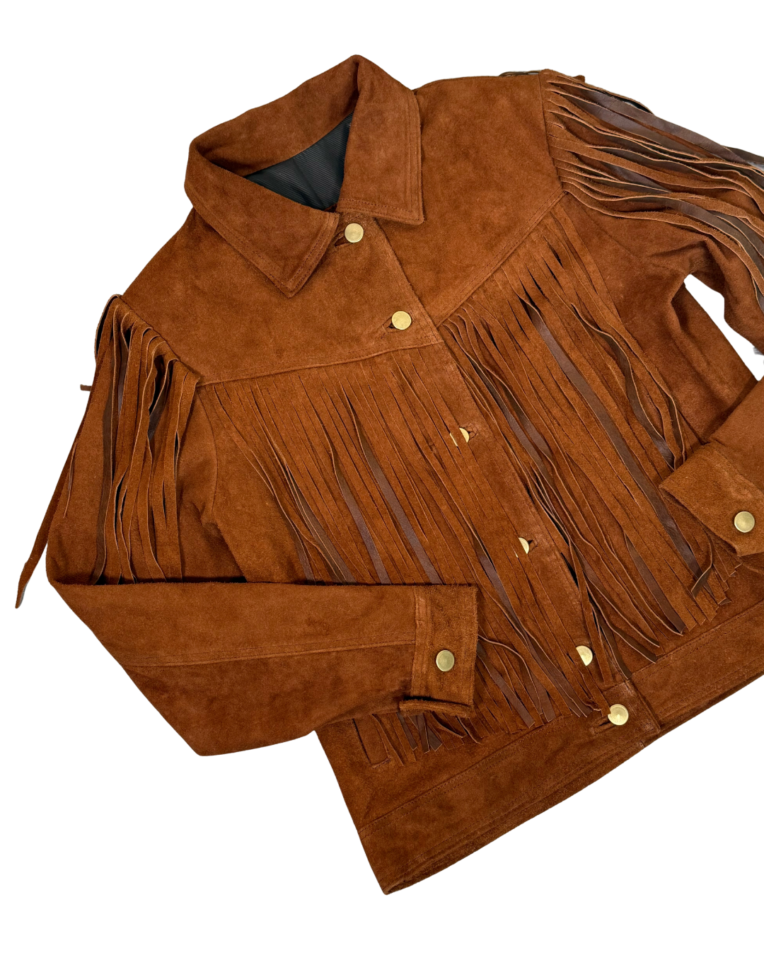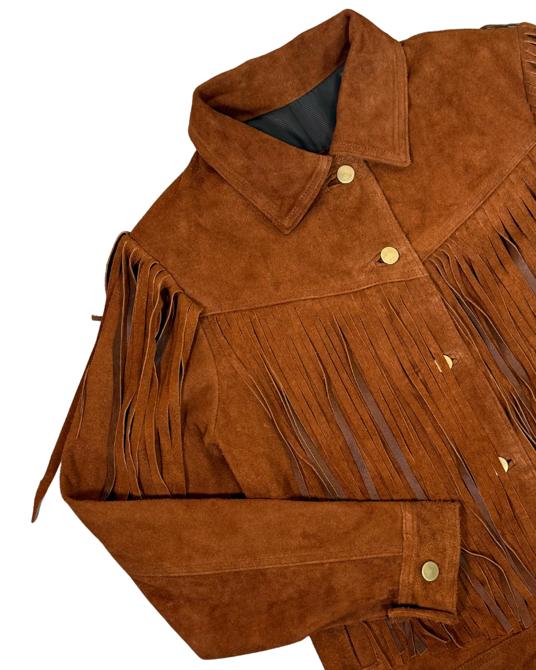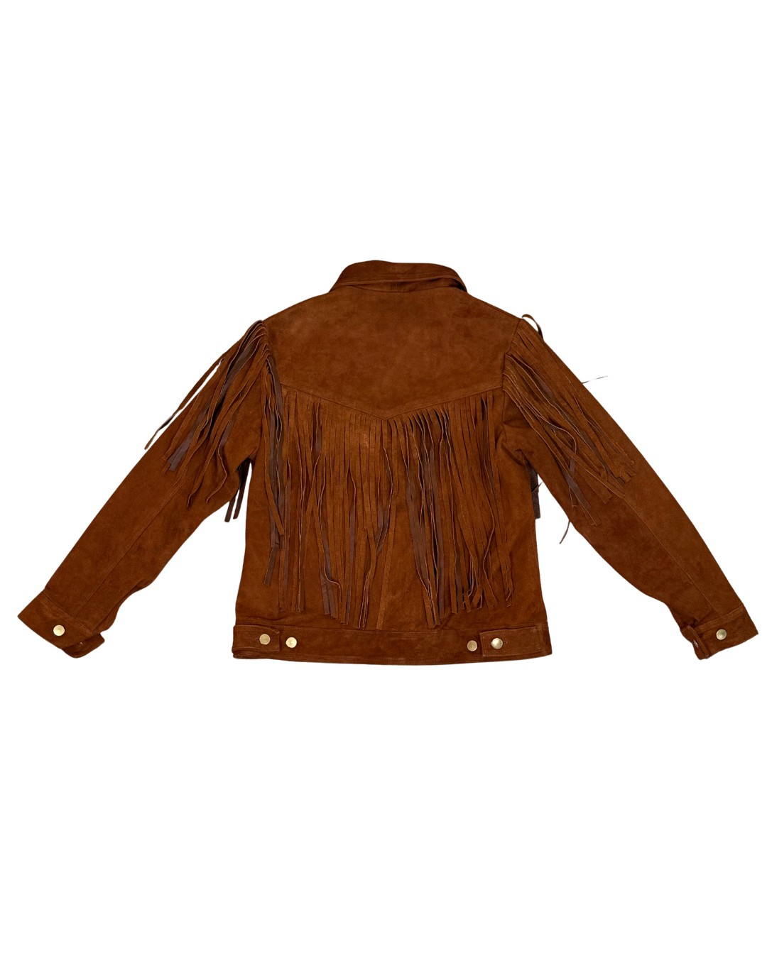 Chamarra de piel con accesorios en barbas por ambas caras estilo cowboy